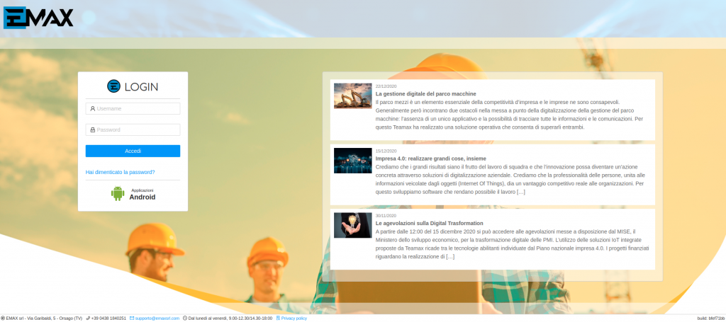 L’accesso ad EMAX avviene attraverso il sito https://profilo.emax.it/login che vi presenterĂ la maschera di login dove dovrete inserire nome utente e password che vi sono stati forniti.