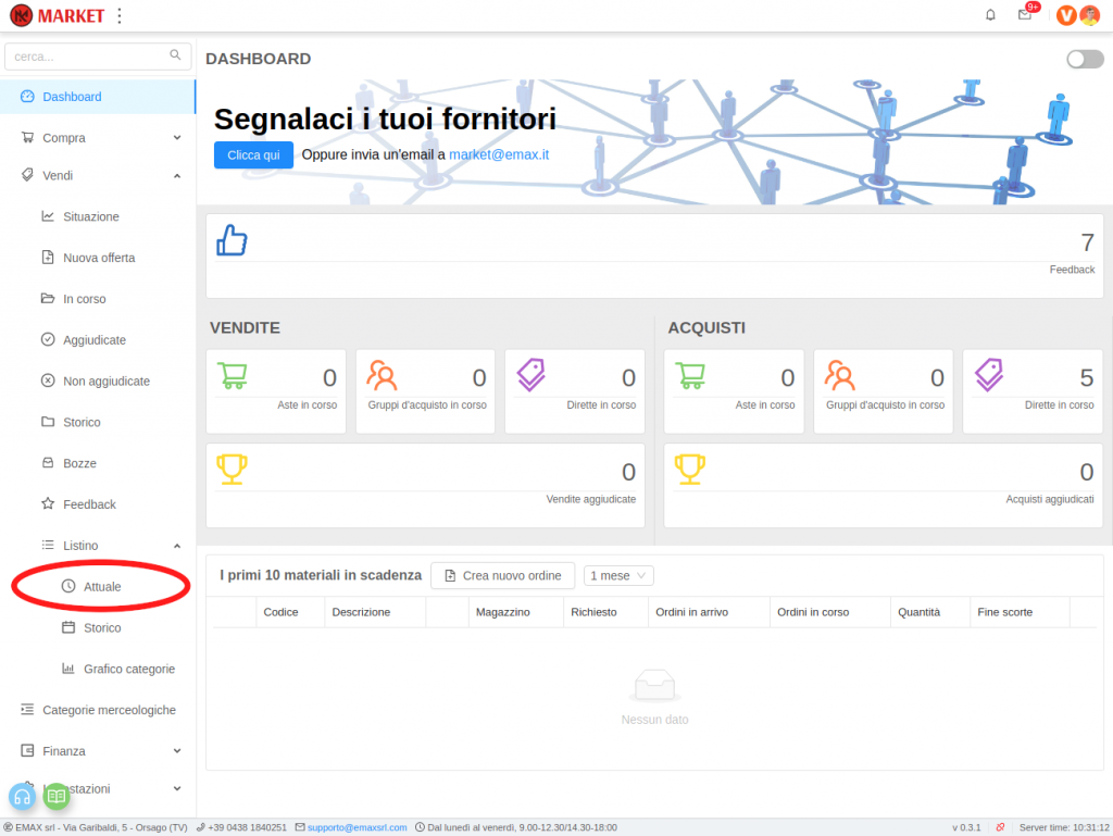 Aprire il menu Vendi, poi Listino e infine cliccare su Attuale.