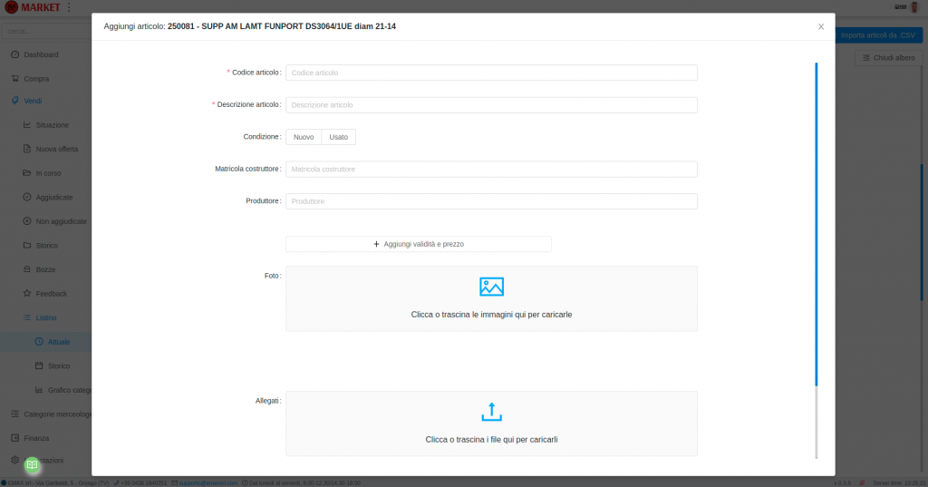 Compilare il modulo con i dati relativi all’articolo che si vuole inserire.