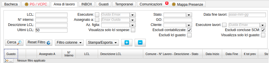 Permette di visualizzare i guasti in carico e di chiuderli.