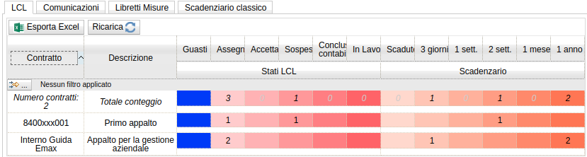 Visibile a tutti, consente un rapido riscontro in merito alla situazione attuale dei contratti dell’azienda in merito a stati LCL, scadenze, comunicazioni e contabilità.