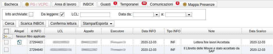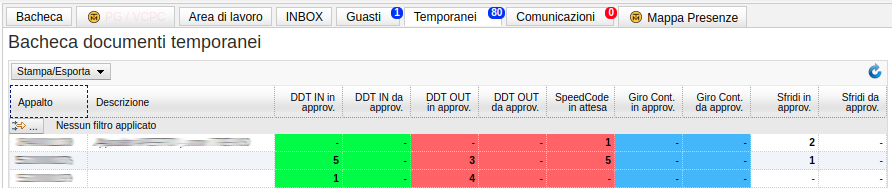 Rapido resoconto dei documenti temporanei presenti nei vari appalti.