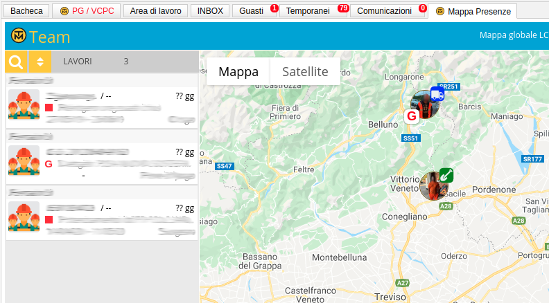 Se si dispone del software Team è possibile avere un rapido riscontro sulle squadre attraverso la mappa delle presenze.