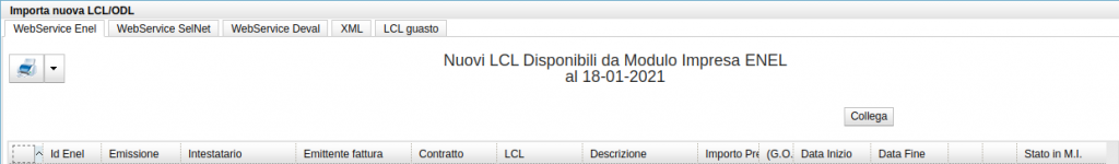Permette di importare direttamente una LCL tramite i servizi ENEL o XML: