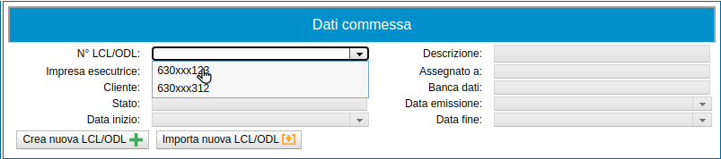 Attenzione: come indicato in precedenza, per poter selezionare/creare una commessa è necessario selezionare l’appalto dal modulo adiacente.