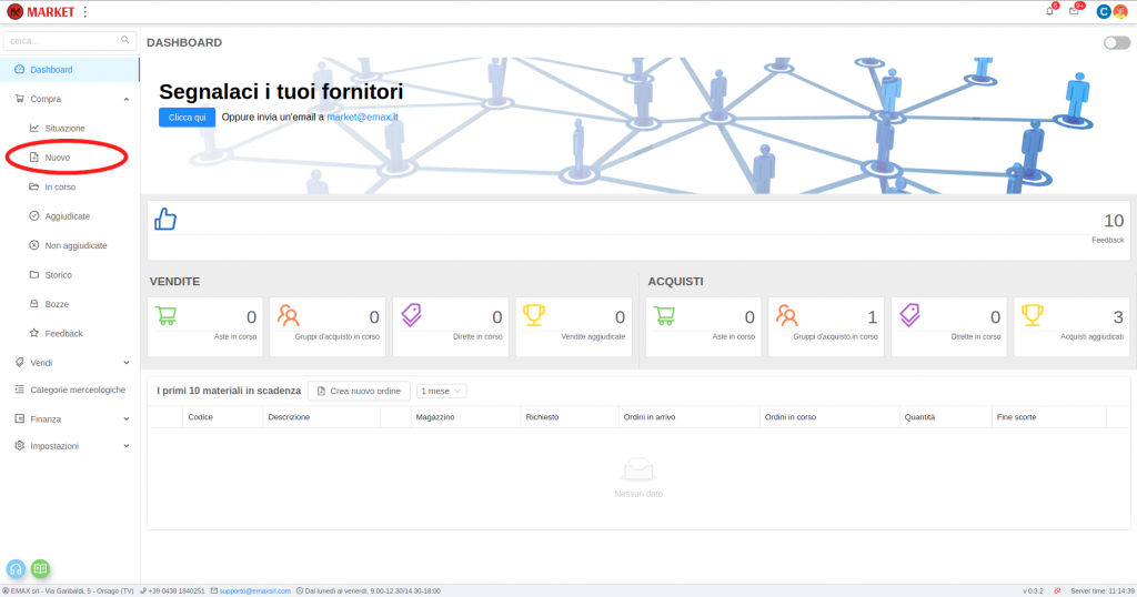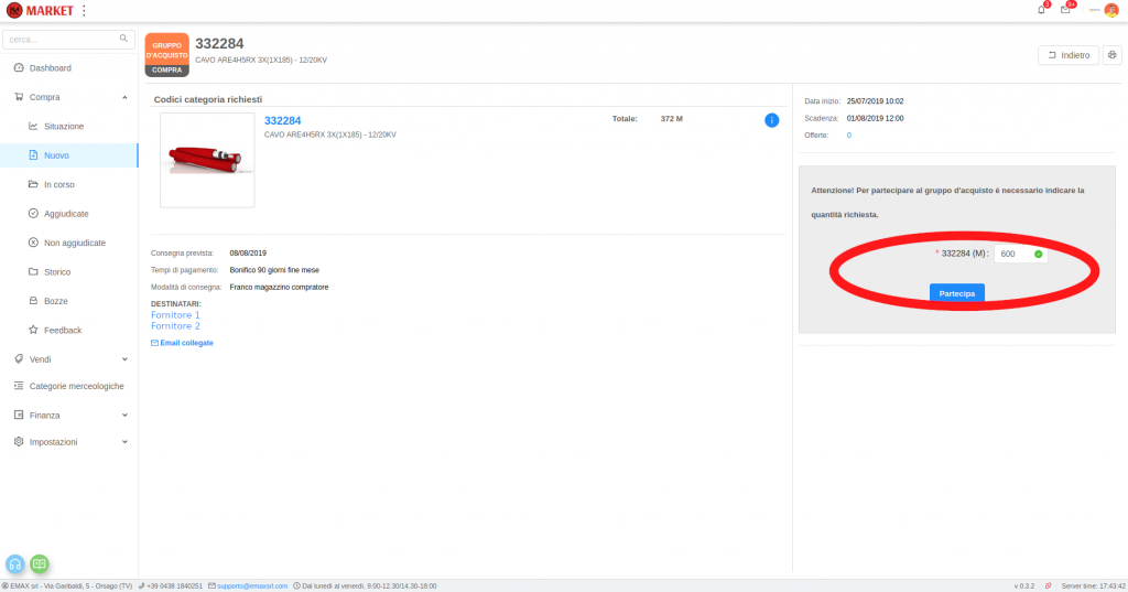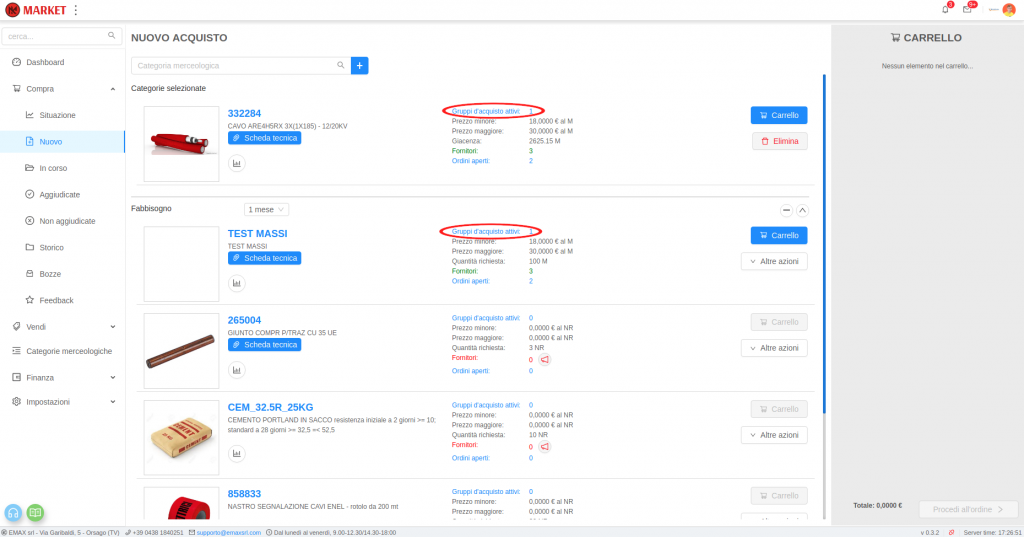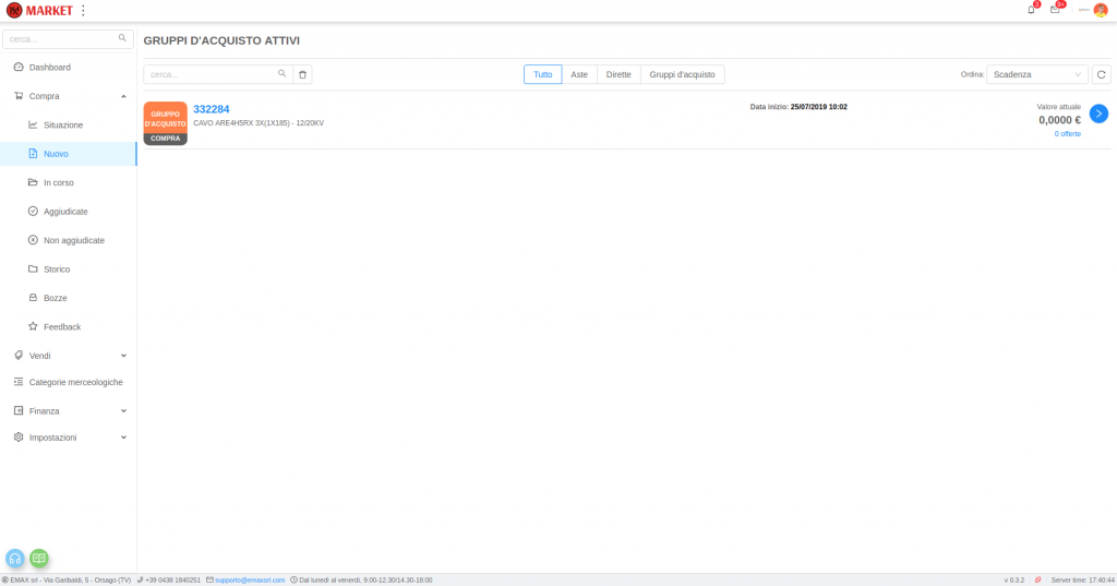 Un acquirente può creare un Gruppo d’acquisto a modo proprio creando un nuovo ordine (Acquistare in Market) oppure partecipare ad uno già esistente creato da un altro acquirente che contiene i materiali desiderati.